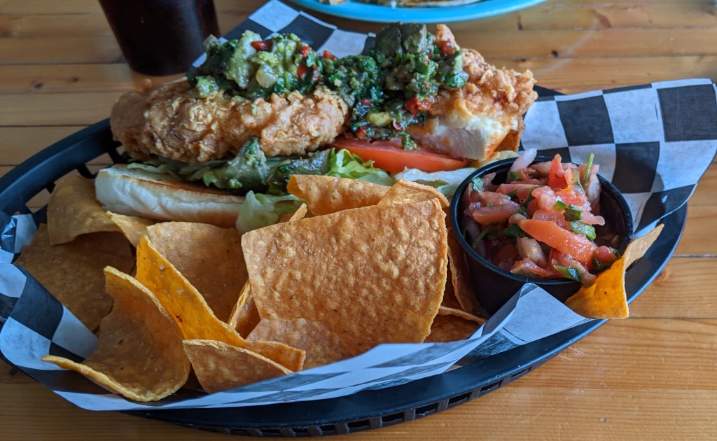 After a long morning of shopping we revived ourselves with lunch at Food Dudes Kitchen, located about a block from our hotel. I had the mahi mahi tacos and Cecil tried the fried, pickle-brined chicken sandwich with avocado and chimichurri. Lunch hit the spot!