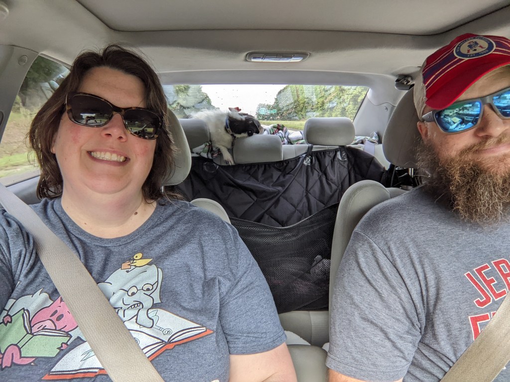 Hitting the road with my two favorite guys! Percy loves to sit in the back window so he can keep an eye on things.