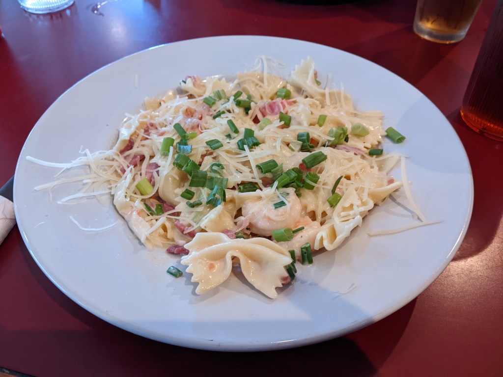 After a slow and easy day, we decided to have our “fancy dinner” – meaning Cecil wears a button-up shirt and I put on lipstick. Haha. We enjoyed an incredible meal at the Red Drum Grill & Taphouse in Nags Head. Cecil ordered a Blackened Gamefish Reuben (that day’s catch was tuna) and I loved the Mac-n-Cheese – bowtie pasta with shrimp and a housemade cheese sauce.