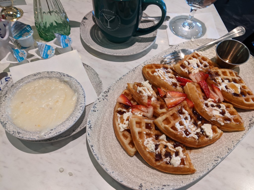 Before we left Macon, we enjoyed breakfast at Toasted Kitchen and Cocktails. I had the French toast with a side of cheese grits and Cecil had the chicken & waffles. Would definitely eat there again!