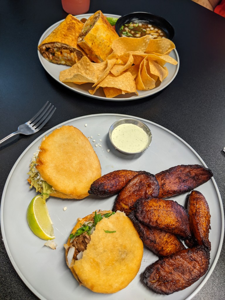 Lunch was soon calling and Cecil found a great restaurant in Dunedin – Fusion Street Eatery. I had two arepas and fried plantains and Cecil had the birria burrito and a guava turnover (shocking, I know, lol). It’s a small place but the service was great and food was excellent. Cecil also bought a bottle of their homemade hot sauce to take home.